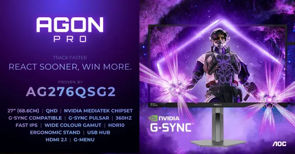 Las Vegas, 8. Januar 2026 - AGON by AOC, weltweit führender Anbieter von Gaming-Monitoren, setzt seine langjährige und intensive technische Zusammenarbeit mit NVIDIA fort. Neustes Ergebnis der engen Partnerschaft ist der 68,6 cm (27") AGON PRO AG276QSG2. Das High-End-Gaming-Modell führt die NVIDIA G-SYNC Pulsar-Technologie in die professionelle E-Sport-Produktreihe von AGON by AOC ein, was zu echten Wettbewerbsvorteilen für Gamer führt.
