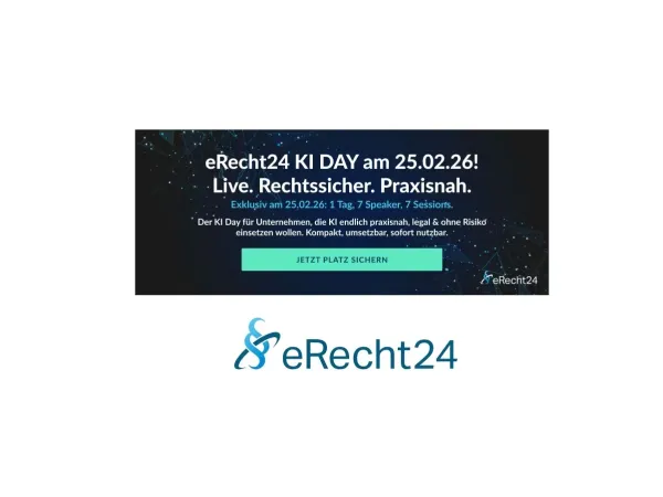 Künstliche Intelligenz verändert den Unternehmensalltag - doch viele Unternehmen stehen vor der Frage: Wie nutzen wir KI strategisch, effizient und rechtssicher? Antworten liefert der eRecht24 KI Day 2026 am 25. Februar 2026. Das Live-Event findet ganztägig von 10 bis 16 Uhr statt und vereint Rechtsexperten, Tech-Spezialisten und KI-Praktiker und zeigt, wie Unternehmen KI sofort gewinnbringend und ohne rechtliche Risiken einsetzen können.