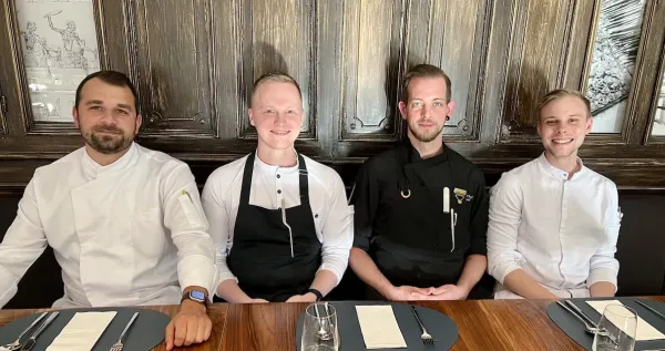 Wien, 14. März 2024 - Vier junge Köche rocken ein traditionsreiches Lokal im 7. Wiener Gemeindebezirk: Ab sofort wird im Handwerk Restaurant mit Spaß, Teamgeist und Leidenschaft achthändig gekocht. Neue Küchenchefs sind der gebürtige Berliner Deniz Neverov und der vorherige Handwerk-Souschef Dominik Czvitkovits. Bram Rondhuis, der zusammen mit Neverov ins Handwerk gewechselt ist, teilt sich den Titel des Souschefs mit dem langjährigen Handwerk-Koch Daniel Rössl.