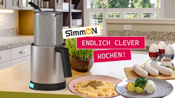 "Essen ist Spaß, Lust & Lebensfreude! So sehe ich das zumindest. Versteht mich nicht falsch, ich mag es zu Kochen - gleichzeitig war ich mir sicher, dass man die Zubereitung von leckerem Essen noch einfacher und praktischer gestalten kann. Überkochendes Wasser beim Nudeln machen, aufgeplatzte Würstchen, langes Stehen neben dem Herd oder matschiges Gemüse, weil man mal wieder die Zeit vergessen hat - alles Dinge, die dank SimmOn der Vegangenheit angehören!"