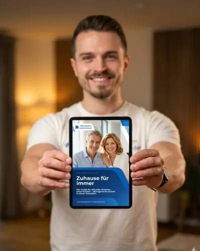 Mit den Informationen aus dem E-Book "Zuhause für immer" verwandeln Hausbesitzer ihre Sorge vor der Zukunft in einen konkreten Plan. Anstatt auf den Notfall zu warten, agieren sie vorausschauend. Das Ergebnis ist nicht nur ein barrierearmes Eigenheim, sondern das unbezahlbare Gefühl der Sicherheit: "Hier kann ich für immer bleiben." - Getreu dem Motto "Umbauen statt umziehen".