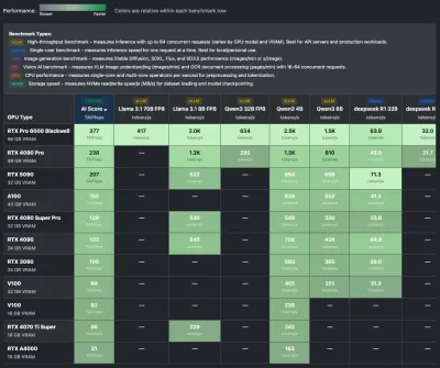 TAIFlops bewertet nicht nur die reine Rechenleistung, sondern auch die praktische Einsatzfähigkeit moderner KI-Workflows - inklusive VRAM-Nutzbarkeit, Parallelfähigkeit und Verhalten unter Produktionsbedingungen. Der Index wird kontinuierlich erweitert, sobald neue GPUs oder neue Benchmark-Workflows hinzukommen.