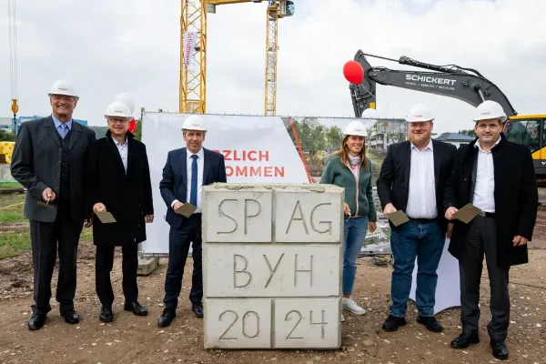 Der Startschuss ist gefallen: Am Dienstag, 17.09.2024 wurde der Grundstein für das neue Wohnquartier von Schultheiß Projektentwicklung und BayernHeim am Sonnenring in Heßdorf gelegt. Die Gemeinde im Landkreis Erlangen-Höchstadt baut ihr Wohnungsangebot damit um 92 geförderte Einheiten aus und kann die Entwicklung ihres Baugebiets Heßdorf-Süd abschließen.