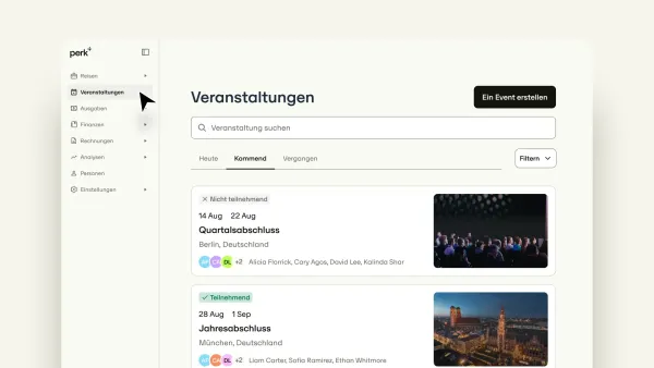 Boston und London, 14. Januar 2026 - Perk, die intelligente Plattform für Reise- und Ausgabenmanagement, gibt heute den Launch von Perk Events bekannt. Das neue, KI-gestützte Modul automatisiert die komplette Planung von Team-Events - von der Location-Auswahl über Reisen und Teilnehmenden-Management bis hin zur Kommunikation.