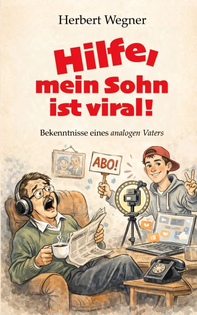 In seinem Debütroman "Hilfe, mein Sohn ist viral!" erzählt Autor Herbert Wegner (Pseudonym für Martin W. Ohlerich aus Siegen) von einem Vater, der beschließt, die digitale Welt seines Sohnes zu verstehen. Er legt sich Instagram an, besucht eine Influencer-Messe und führt ein Wörterbuch, in dem er Begriffe wie "Cringe", "Shitstorm" und "FOMO" in seine eigene Sprache übersetzt. Seine Definition von "viral gehen": Wenn etwas so ansteckend ist wie eine Erkältung, nur dass man es absichtlich haben will. Herbert stolpert von einem Missverständnis ins nächste - und wird dabei selbst zum Internet-Phänomen.