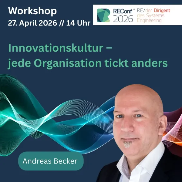 Der Workshop Innovationskultur - jede Organisation tickt anders (https://www.hood-group.com/reconf/agenda/htws35-innovationskultur-jede-organisation-tickt-anders) findet am Montag, 27. April 2026, von 14:00 bis 18:00 Uhr statt (REConf 2026). Unternehmen, die das Thema direkt intern verankern möchten, können den Workshop Innovationskultur - rund um eine eigene Spielphilosophie für innovative Unternehmen (https://www.andreasbecker.com/training/workshop-innovationskultur)auch als Inhouse-Format anfragen.
