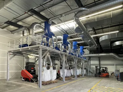 Seit Anfang 2024 wird bei Wefapress in der neuen Fertigung wieder gearbeitet. Die neuen Kunststoffbearbeitungsmaschinen wie z.B. CNC-Fräsen oder Plattenaufteilsägen sind nun in ein nachhaltiges Entsorgungskonzept eingebunden und alle Späne werden 100% sortenrein und sauber abgesaugt und verwertet. Das System von Höcker Polytechnik mit einer zentralen MultiStar Filteranlage saugt die gesamte Fertigung automatisiert über vier separate Leitungen ab, ist sensorüberwacht und reduziert den Personaleinsatz für das Recycling der Kunststoffspäne auf üblicherweise eine Stunde pro Tag.